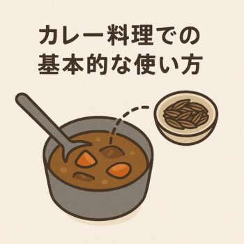 - カレー作りではクミンシードを油で炒めてから他の材料を加えると香りが引き立つ