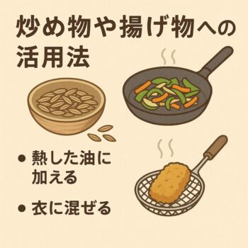 クミンは炒め物や揚げ物にも幅広く活用でき、いつもの料理にエキゾチックな風味を加えることができます。短時間で仕上げる料理にこそ、クミンの香りが効果的に働きます。