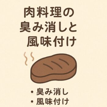 - 羊肉や鶏肉などの肉料理では臭み消しと風味付けの両方の効果が期待できる